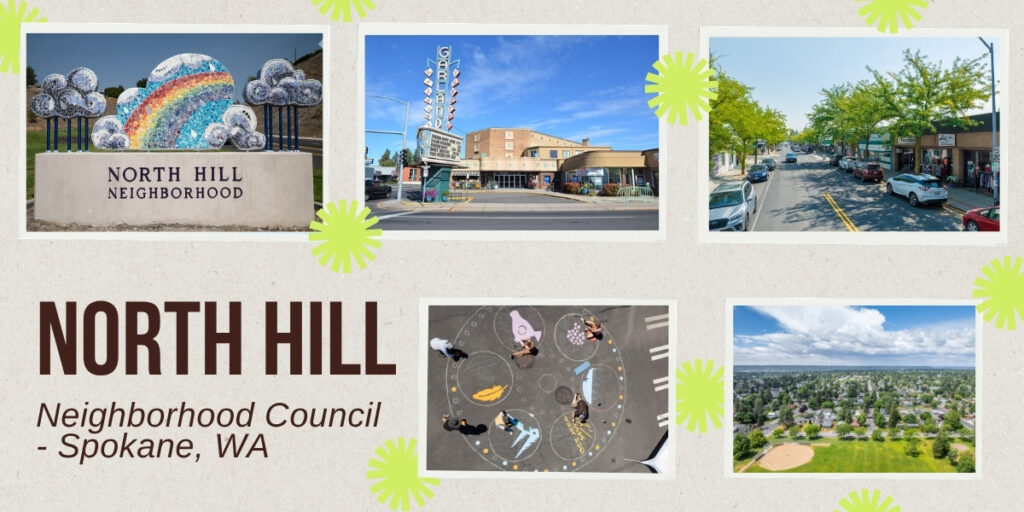 North Hill Neighborhood Council (NHNC) is a volunteer-run organization made up residents who live, work, or operate a business within the designated neighborhood boundary that meet regularly to maintain and improve the quality of life in Spokane, increase resident participation in local decision-making, and form an effective partnership between the City and neighborhood residents.